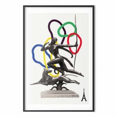 Plakat - Grafika kolaż - kobieta strzelająca z łuku rozmiar 40x60, wykończenie Rama czarna z marginesem