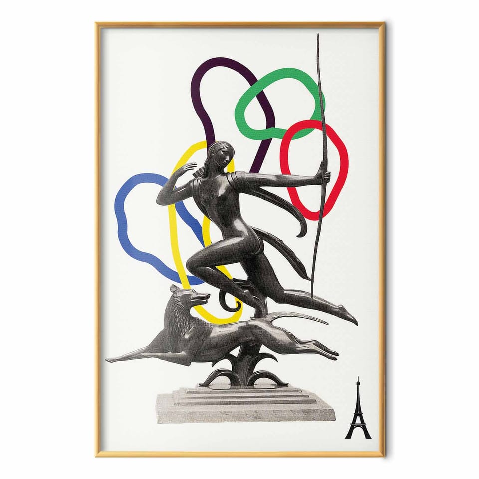 Plakat - Grafika kolaż - kobieta strzelająca z łuku rozmiar 40x60, wykończenie Rama złota