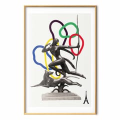 Plakat - Grafika kolaż - kobieta strzelająca z łuku rozmiar 60x90, wykończenie Rama złota z marginesem