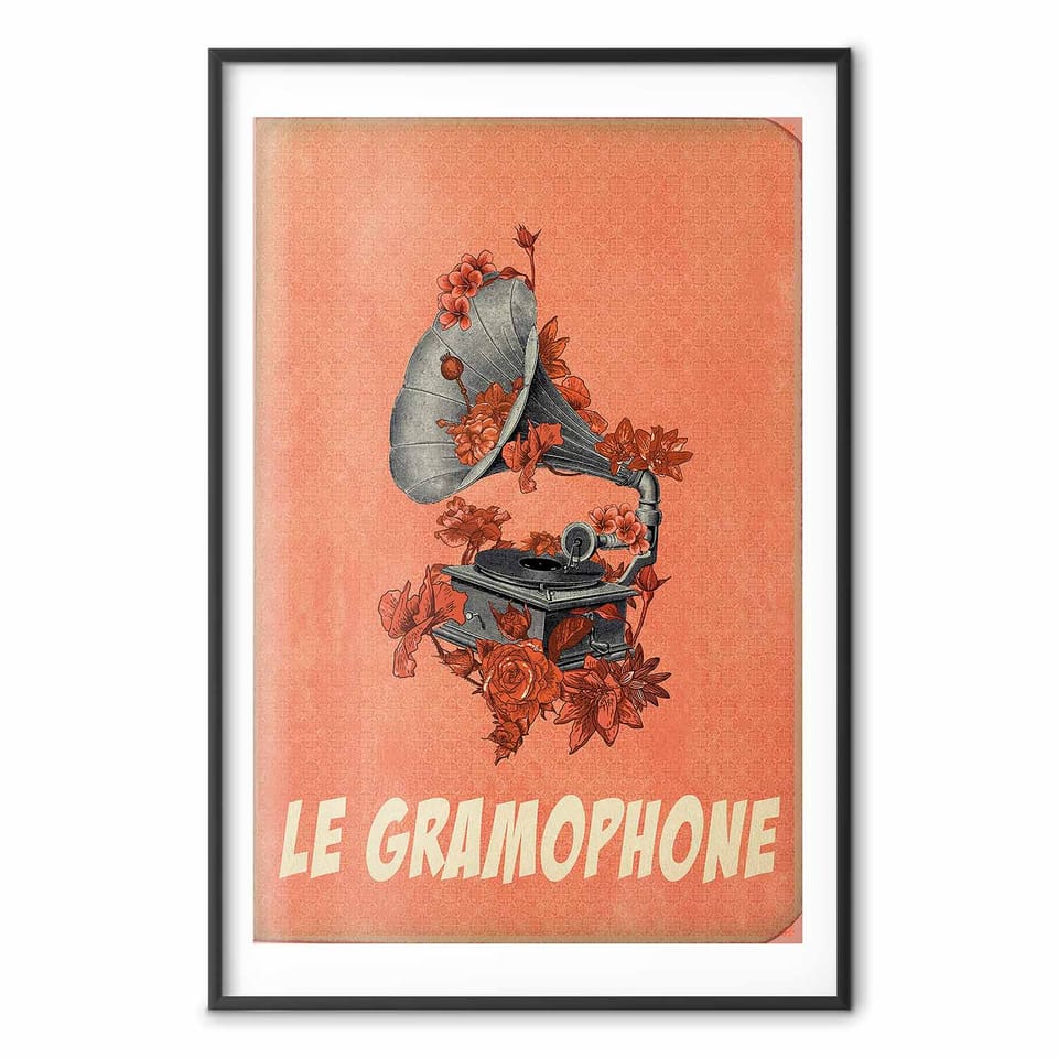 Plakat - Gramofon rozmiar 21x30, wykończenie Rama czarna z marginesem