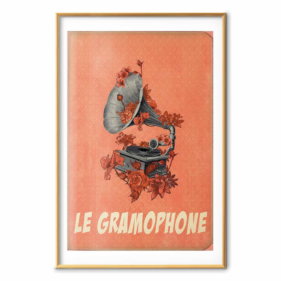 Plakat - Gramofon rozmiar 60x90, wykończenie Rama złota z marginesem