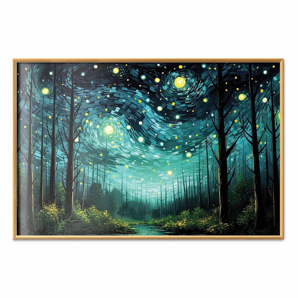 Plakat - Gwieździsta noc - współczesna wersja nocnego nieba Van Gogha rozmiar 42x29.7, wykończenie Rama złota