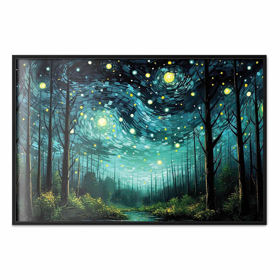 Plakat - Gwieździsta noc - współczesna wersja nocnego nieba Van Gogha rozmiar 90x60, wykończenie Rama czarna