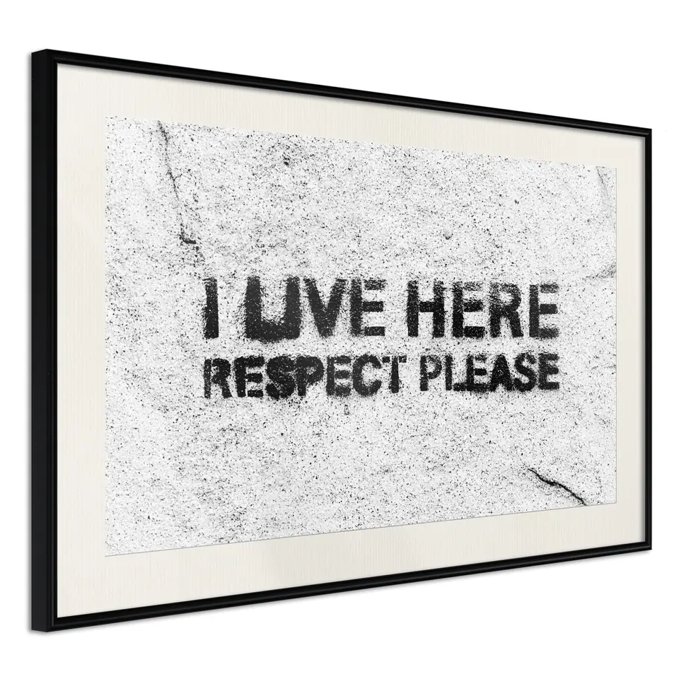 Plakat - I live here, respect please [Poster] rozmiar 30x20, wykończenie Rama czarna z passe-partout