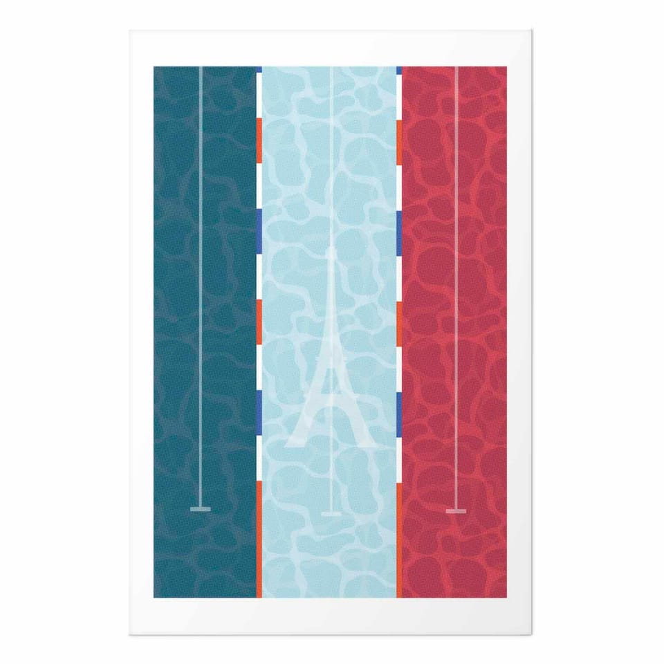 Plakat - Ilustracja basenu na tle flagi Francji rozmiar 21x30, wykończenie Bez ramy z marginesem