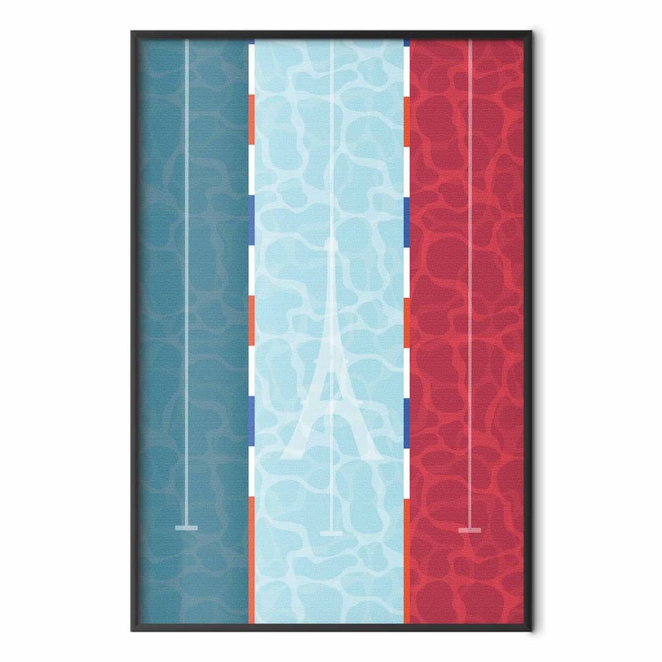 Plakat - Ilustracja basenu na tle flagi Francji rozmiar 21x30, wykończenie Rama czarna