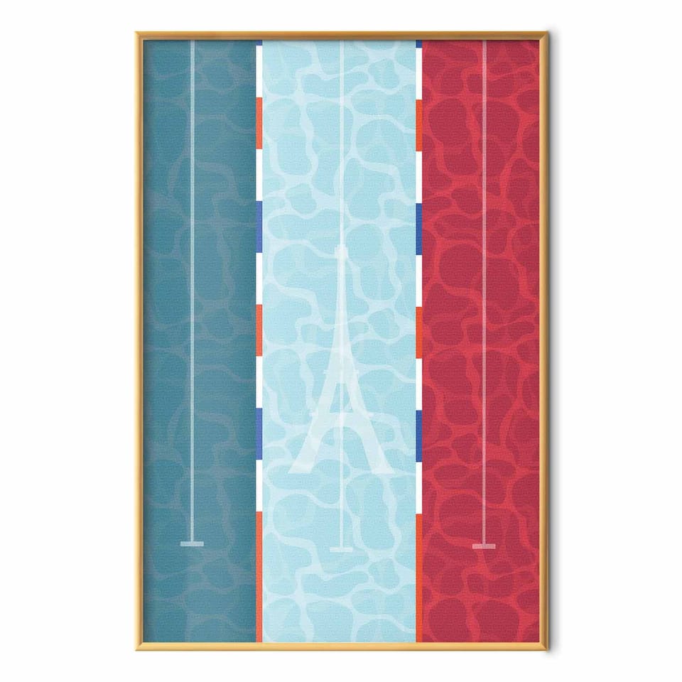 Plakat - Ilustracja basenu na tle flagi Francji rozmiar 29.7x42, wykończenie Rama złota