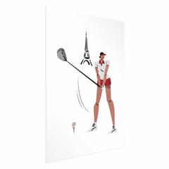 Plakat - Ilustracja golfistki z wieżą Eiffla w tle rozmiar 60x90, wykończenie Bez ramy z marginesem