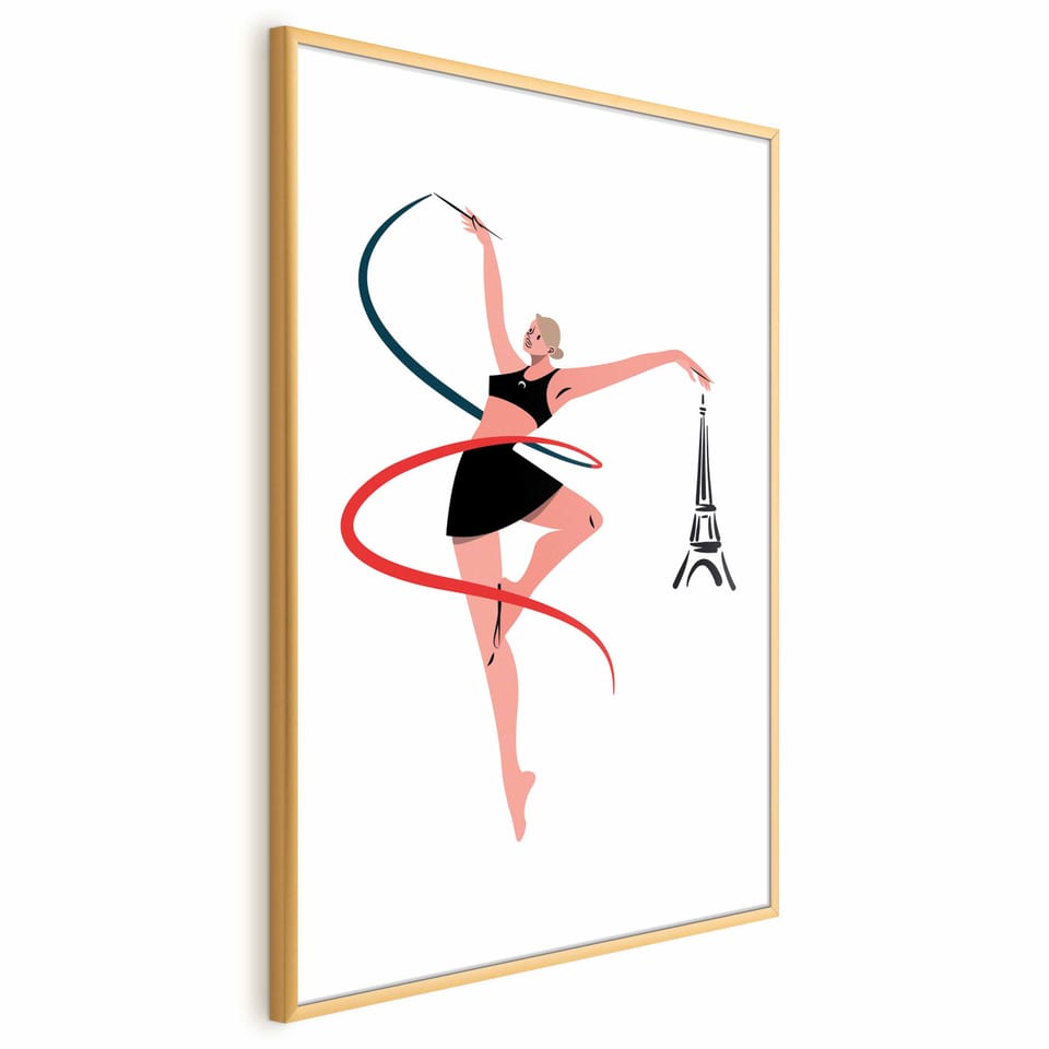 Plakat - Ilustracja kobiety z szarfą - gimnastyka artystyczna rozmiar 40x60, wykończenie Rama złota