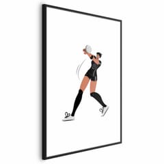 Plakat - Ilustracja - zawodniczka drużyny piłki siatkowej rozmiar 21x30, wykończenie Rama czarna z marginesem
