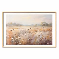 Plakat - Impresjonistyczna łąka - krajobraz polny w pastelowej palecie barw rozmiar 60x40, wykończenie Rama złota z marginesem