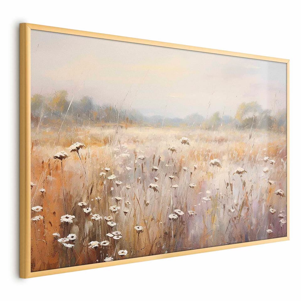 Plakat - Impresjonistyczna łąka - krajobraz polny w pastelowej palecie barw rozmiar 90x60, wykończenie Rama złota