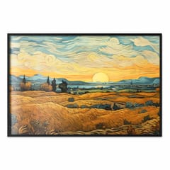 Plakat - Impresjonistyczne łany - namalowany złoty krajobraz z łanami zboża rozmiar 90x60, wykończenie Rama czarna