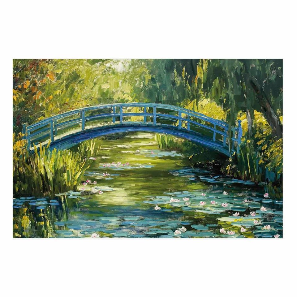 Plakat - Impresjonistyczny mostek - obraz mostu na malowniczym tle rozmiar 42x29.7, wykończenie Bez ramy
