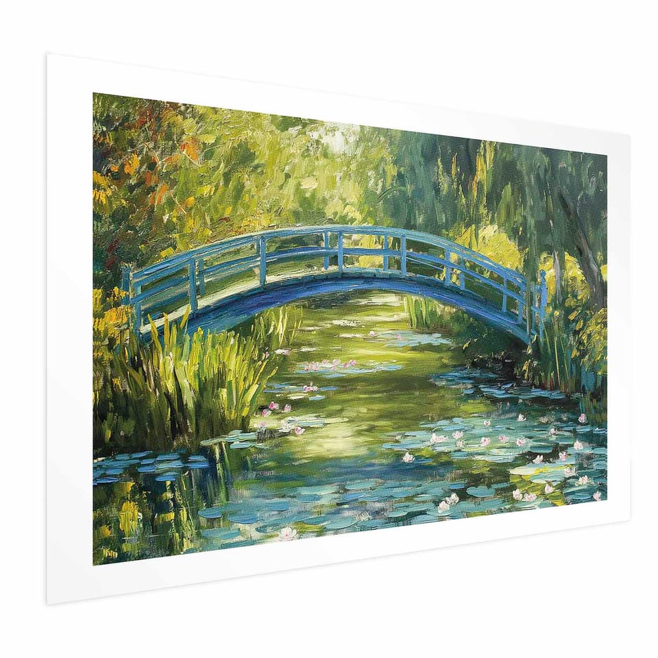Plakat - Impresjonistyczny mostek - obraz mostu na malowniczym tle rozmiar 42x29.7, wykończenie Bez ramy z marginesem
