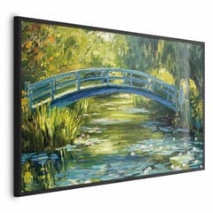 Plakat - Impresjonistyczny mostek - obraz mostu na malowniczym tle rozmiar 42x29.7, wykończenie Rama czarna
