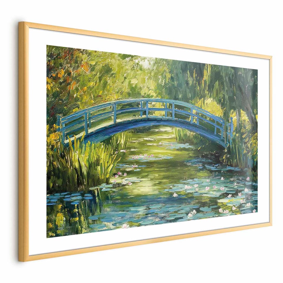 Plakat - Impresjonistyczny mostek - obraz mostu na malowniczym tle rozmiar 42x29.7, wykończenie Rama złota z marginesem