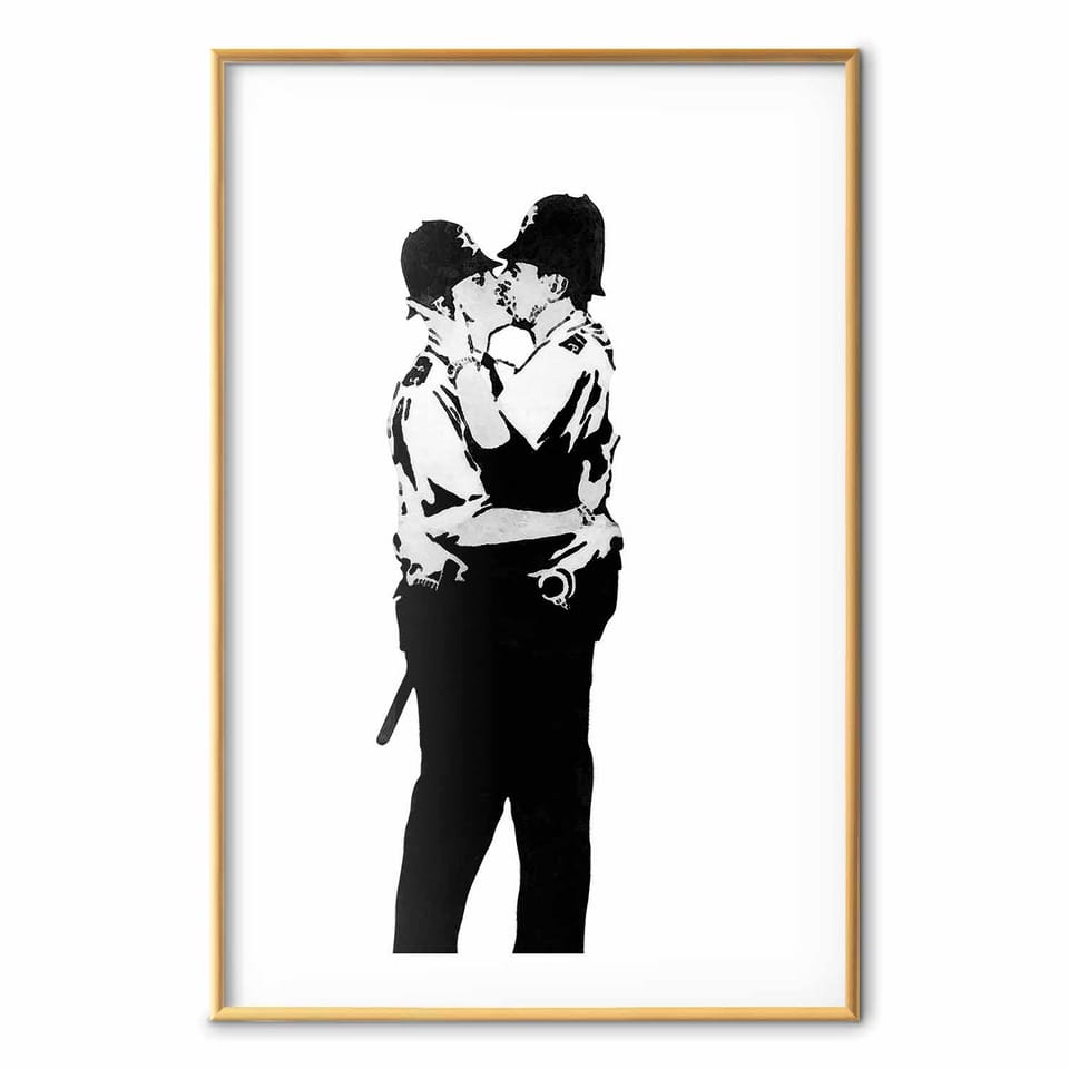 Plakat - Kissing Coppers rozmiar 40x60, wykończenie Rama złota z marginesem