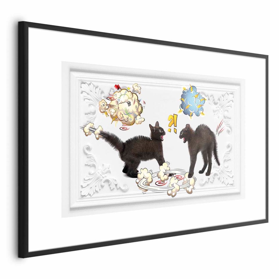 Plakat - Kocia kłótnia rozmiar 60x40, wykończenie Rama czarna z marginesem