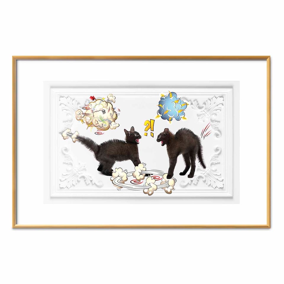 Plakat - Kocia kłótnia rozmiar 90x60, wykończenie Rama złota z marginesem