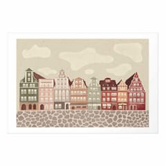 Plakat - Kolorowe Fasady - zabytkowe wrocławskie kamienice na tle nieba i brukowanej uliczki rozmiar 60x40, wykończenie Bez ramy z marginesem
