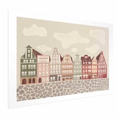 Plakat - Kolorowe Fasady - zabytkowe wrocławskie kamienice na tle nieba i brukowanej uliczki rozmiar 90x60, wykończenie Bez ramy z marginesem