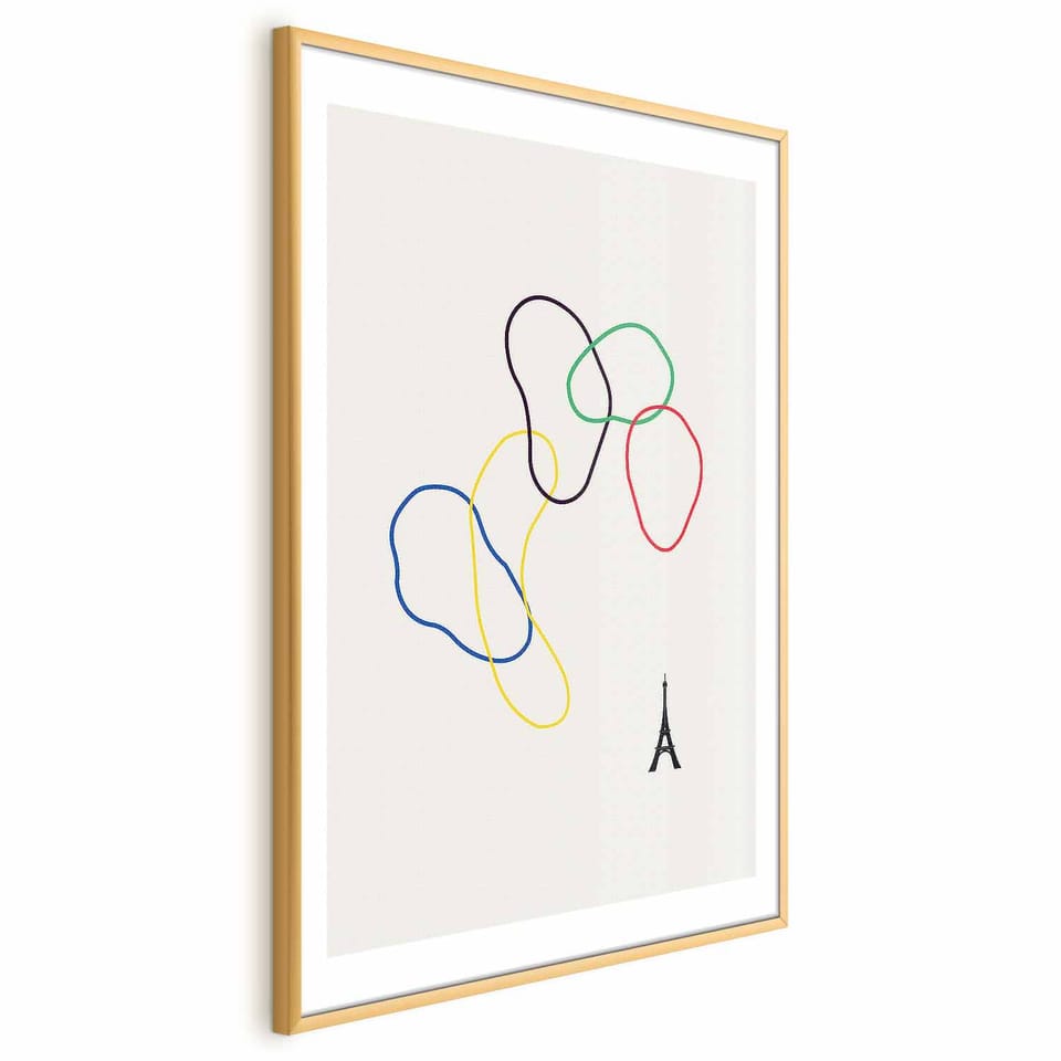 Plakat - Kolorowe koła- grafika cyfrowa - minimalizm rozmiar 60x90, wykończenie Rama złota z marginesem