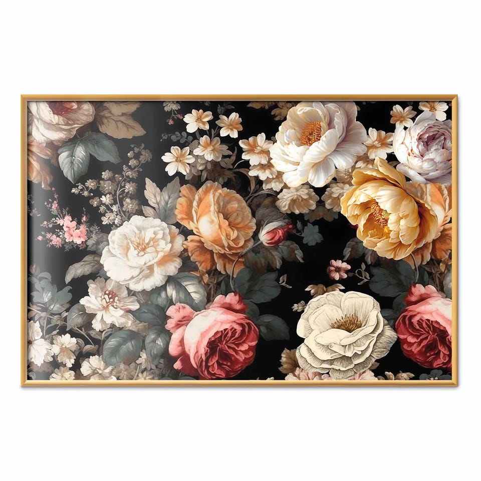 Plakat - Kolorowe kwiaty na czarnym tle rozmiar 30x21, wykończenie Rama złota