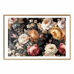 Plakat - Kolorowe kwiaty na czarnym tle rozmiar 60x40, wykończenie Rama złota z marginesem