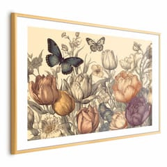 Plakat - Kolorowe tulipany na kremowym tle rozmiar 60x40, wykończenie Rama złota z marginesem