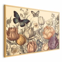 Plakat - Kolorowe tulipany na kremowym tle rozmiar 90x60, wykończenie Rama złota