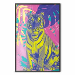 Plakat - Kolorowy tygrys - Intensywne barwy tygrysa w otoczeniu tropikalnych roślin rozmiar 40x60, wykończenie Rama czarna