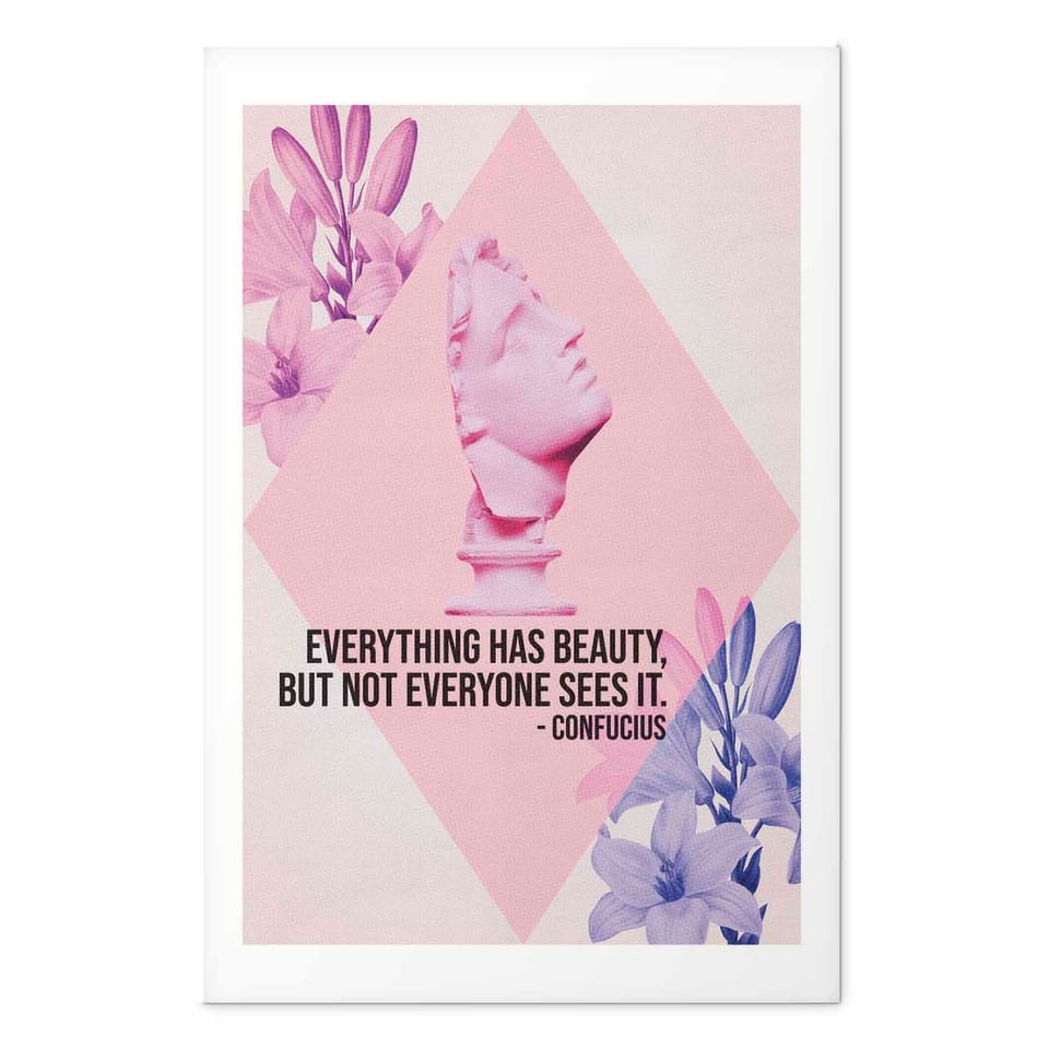 Plakat - Konfucjusz o Pięknie - popiersie w różu z kwiatami i cytatem rozmiar 29.7x42, wykończenie Bez ramy z marginesem