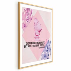 Plakat - Konfucjusz o Pięknie - popiersie w różu z kwiatami i cytatem rozmiar 29.7x42, wykończenie Rama złota z marginesem