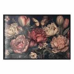 Plakat - Kwiaty na turkusowym tle rozmiar 90x60, wykończenie Rama czarna