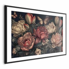Plakat - Kwiaty na turkusowym tle rozmiar 90x60, wykończenie Rama czarna z marginesem