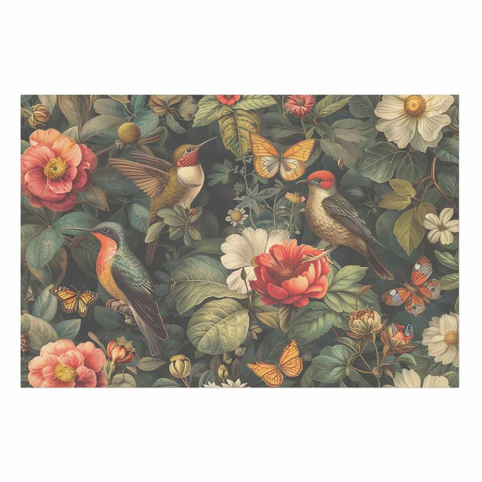 Plakat - Kwiaty; ptaki i motyle - ilustracja w stylu vintage rozmiar 60x40, wykończenie Bez ramy