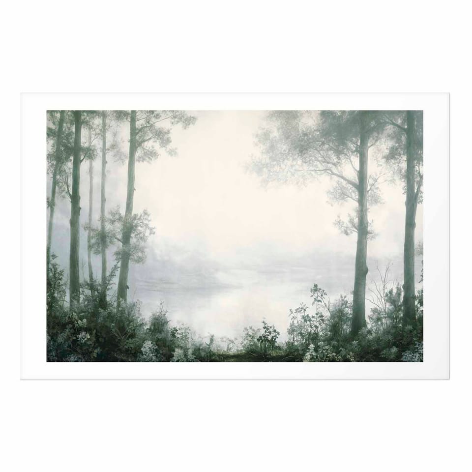 Plakat - Lasek i staw w spatynowanej zieleni rozmiar 30x21, wykończenie Bez ramy z marginesem
