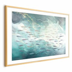 Plakat - Ławica drobnych ryb rozmiar 60x40, wykończenie Rama złota z marginesem