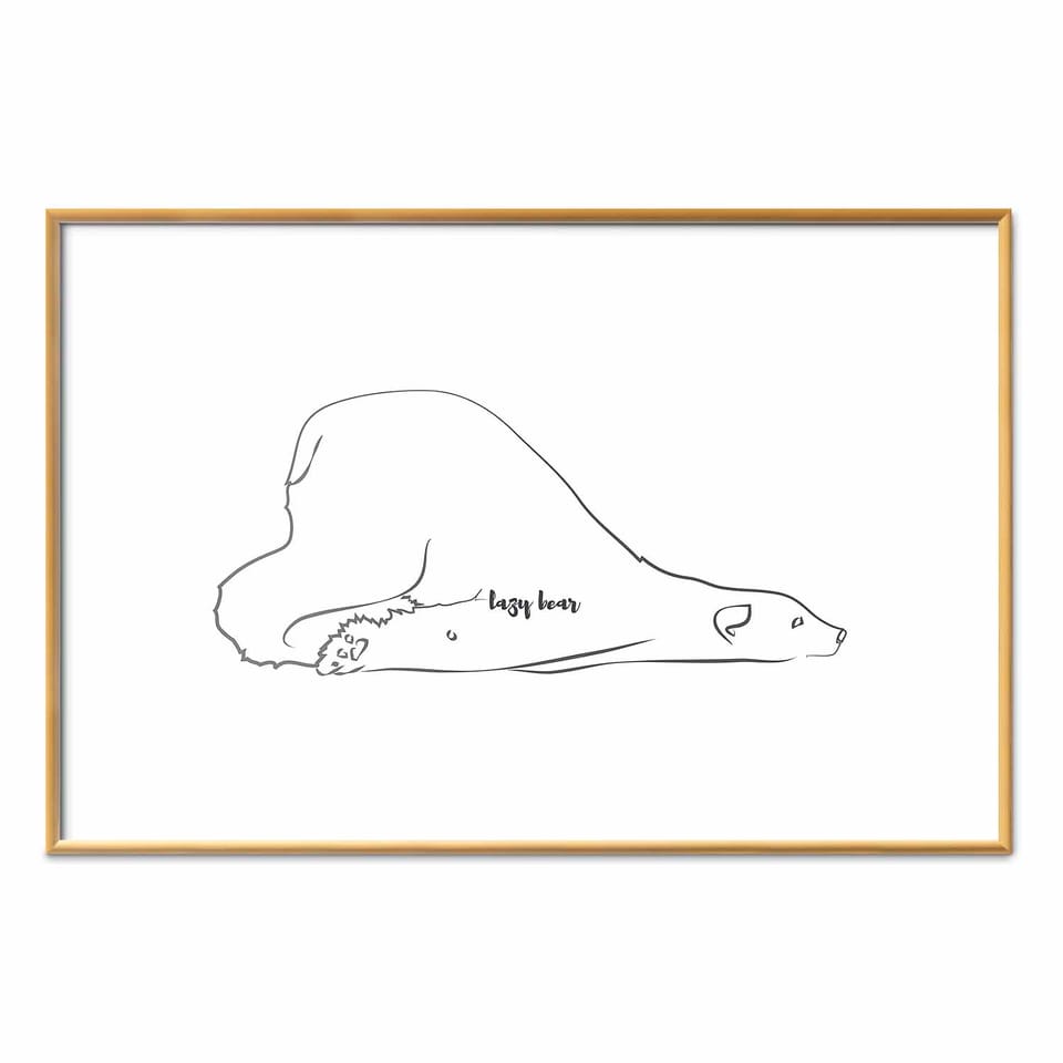 Plakat - Leniwy niedźwiedź rozmiar 90x60, wykończenie Rama złota