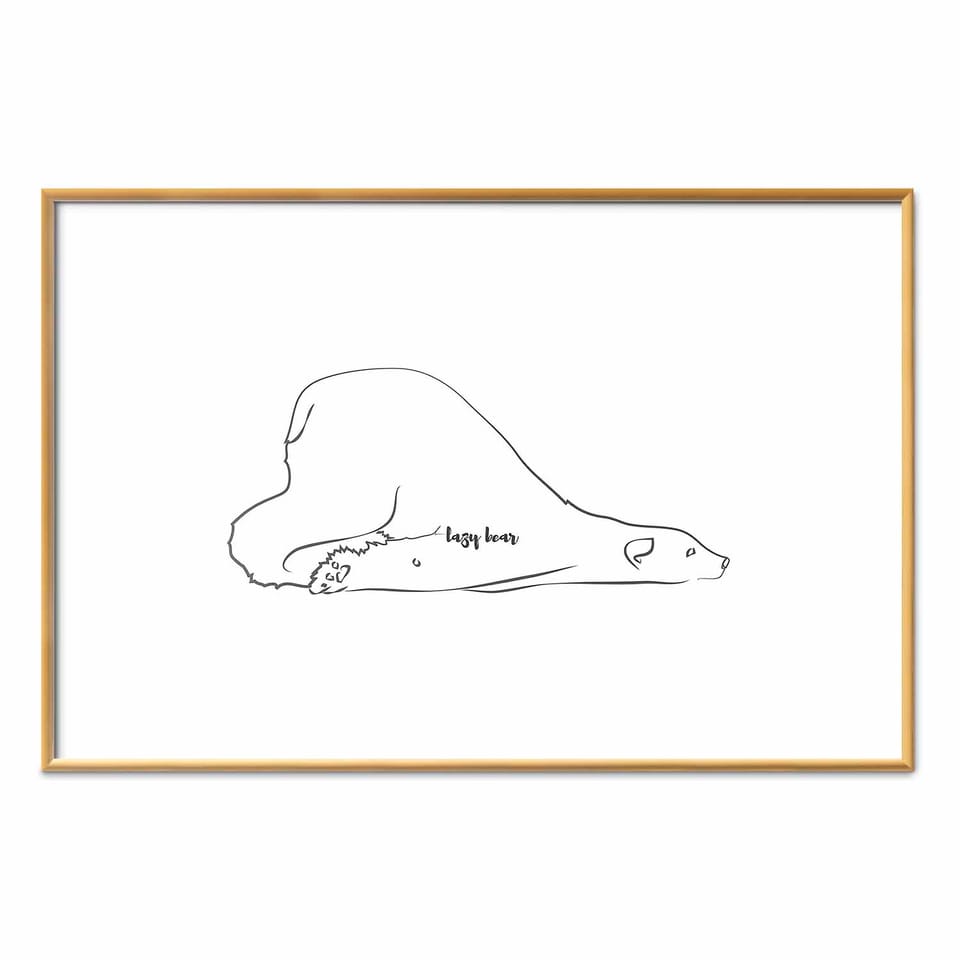 Plakat - Leniwy niedźwiedź rozmiar 90x60, wykończenie Rama złota z marginesem
