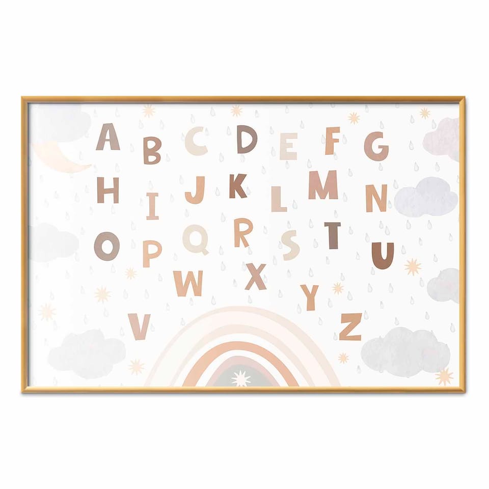 Plakat - Literki w stonowanych barwach rozmiar 42x29.7, wykończenie Rama złota