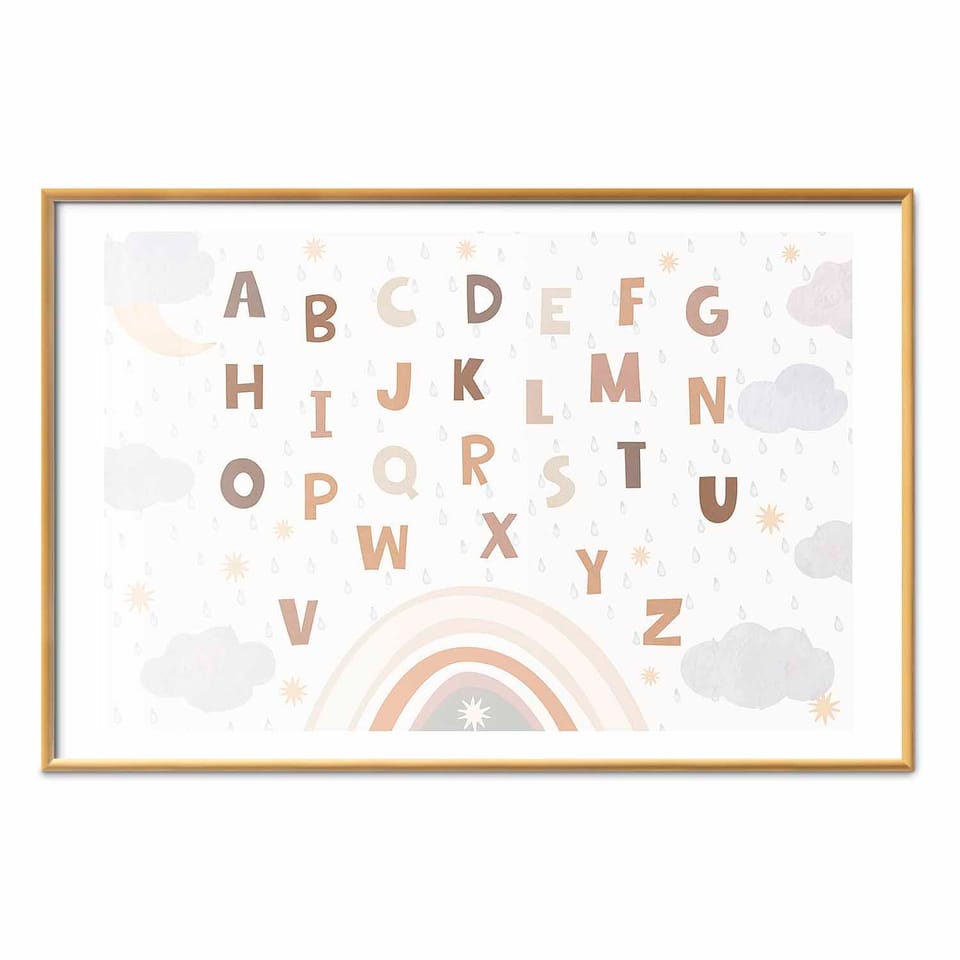 Plakat - Literki w stonowanych barwach rozmiar 90x60, wykończenie Rama złota z marginesem