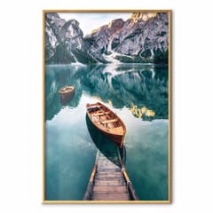 Plakat - Łodzie w Dolomitach rozmiar 29.7x42, wykończenie Rama złota