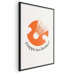 Plakat - Lotka do badmintona na tle pomarańczowego słońca rozmiar 40x60, wykończenie Rama czarna