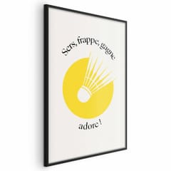 Plakat - Lotka do badmintona na tle żółtego słońca rozmiar 60x90, wykończenie Rama czarna