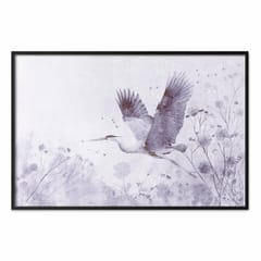 Plakat - Majestatyczny lot - żuraw w locie w monochromatycznej; chłodnej kolorystyce rozmiar 42x29.7, wykończenie Rama czarna