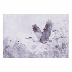 Plakat - Majestatyczny lot - żuraw w locie w monochromatycznej; chłodnej kolorystyce rozmiar 60x40, wykończenie Bez ramy