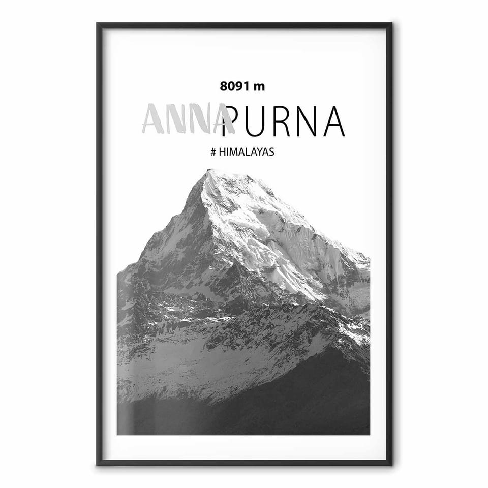 Plakat - Majestatyczny szczyt górski Annapurna korona gór pejzaż górski rozmiar 21x30, wykończenie Rama czarna z marginesem