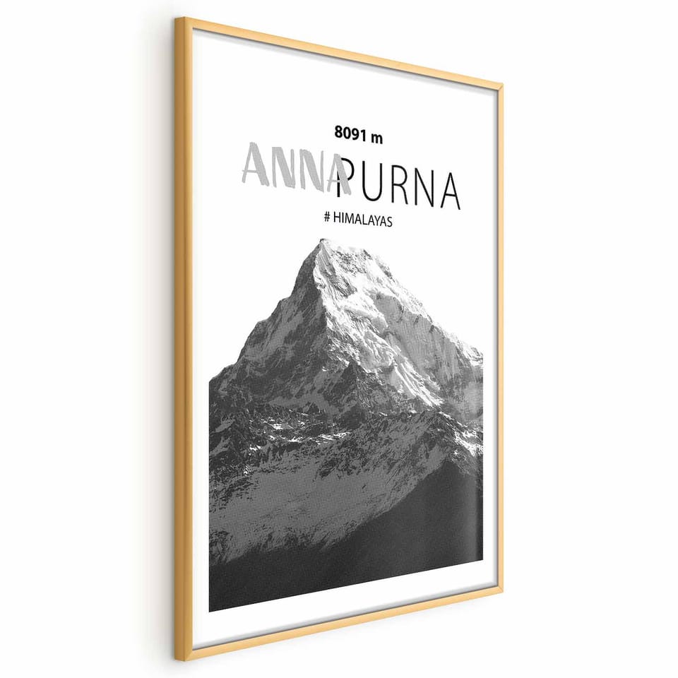 Plakat - Majestatyczny szczyt górski Annapurna korona gór pejzaż górski rozmiar 21x30, wykończenie Rama złota z marginesem